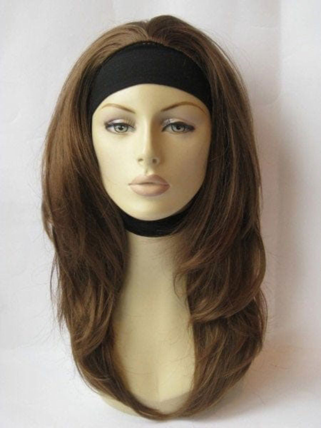 Brown half wig hairpiece (3/4 wig), gently layered: Briar
