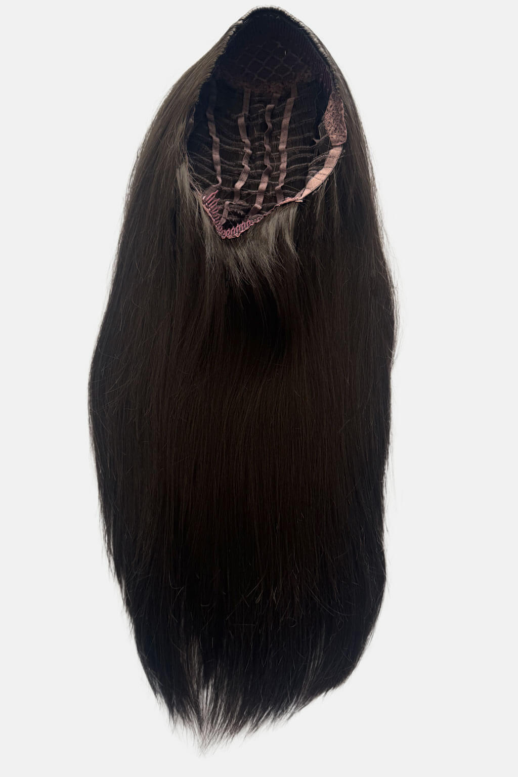 3. Slip the flexi-comb of your half wig onto the bun and secure it.