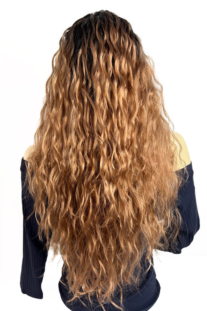Astrid is all about living your fantasy, mermaid, retro dreams. With a short blunt fringe and plenty of luxurious, long blonde, crimped waves she is going to turn heads wherever you take her.